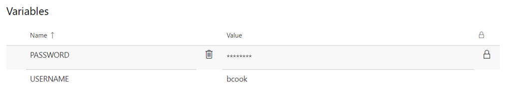 Clearly, putting a clear text password variable in your pipeline is dangerous because any script in the pipeline has access to it. Fortunately, it’s very easy to lock this down by converting your variable into a secret.